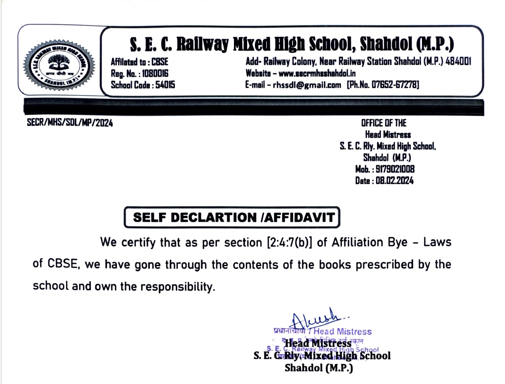 S.E.C.RAILWAY MIXED HIGH SCHOOL SHAHDOL (M.P)